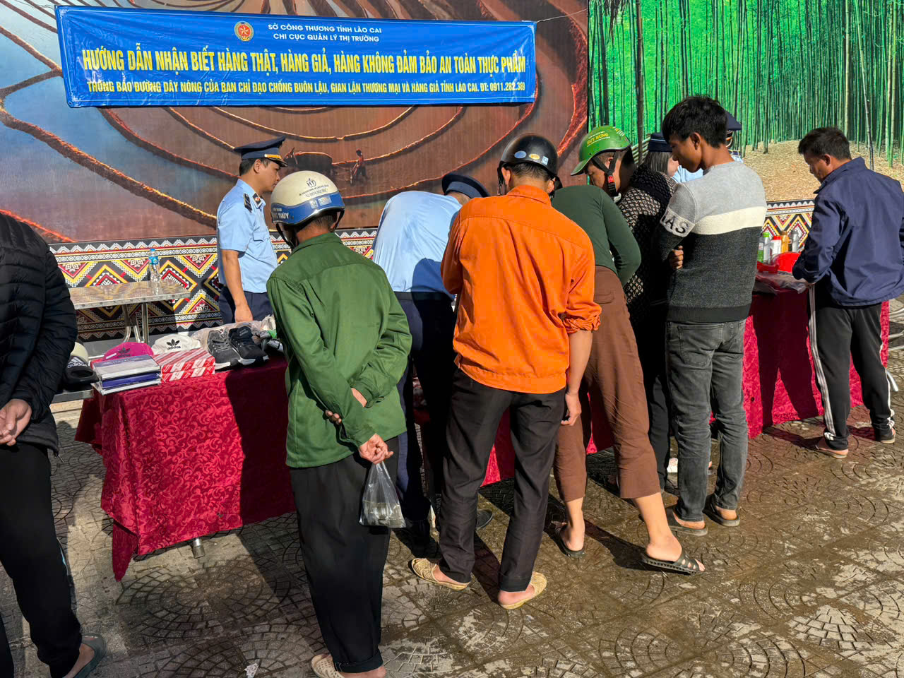 Thực hiện Kế hoạch số 191/KH-QLTT ngày 17 tháng 9 năm 2025 của Chi cục Quản lý thị trường (QLTT) tỉnh Lào Cai về tuyên truyền phổ biến pháp luật về phòng, chống buôn lậu, gian lận thương mại, hàng giả và giới thiệu cách phân biệt hàng thật - hàng giả cho người tiêu dùng năm 2025; Tổ công tác truyên truyền phổ biến pháp luật theo Quyết định số 267/QĐ-QLTT ngày 14 tháng 10 năm 2025 của Chi cục trưởng Chi cục QLTT đã thực hiện nhiệm vụ tuyên truyền phổ biến pháp luật đợt 2 năm 2025 tại Chợ Mù Cang Chải, thuộc thôn 3, xã Mù Cang Chải và Chợ Đồng Khê thuộc thôn Đồng Khê, xã Văn Chấn, tỉnh Lào Cai.