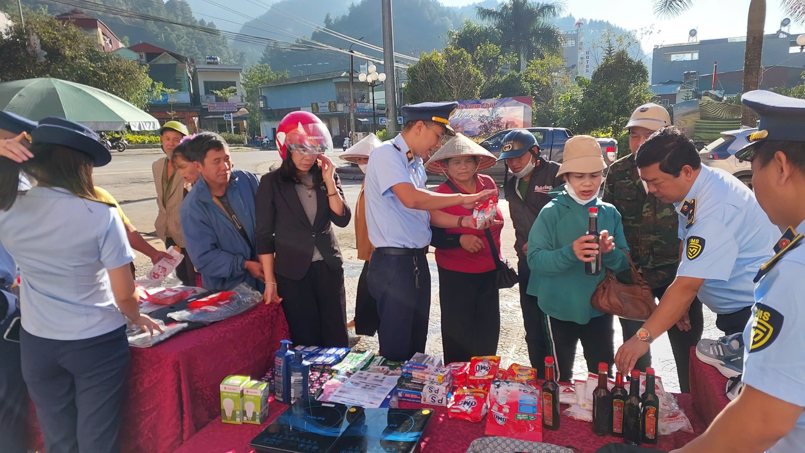 Với nòng cốt là công chức thuộc Đội QLTT số 4 và công chức phòng Nghiệp vụ - Tổng hợp thuộc Chi cục Quản lý thị trường tỉnh Lào Cai trong các ngày 17 và 19 tháng 10 năm 2025, Tổ tuyên truyền đã tổ chức 02 cuộc tuyên truyền tại chợ Mù Cang Chải và Chợ Đồng Khê theo kế hoạch. Với hình thức tuyên truyền phát thanh trên xe lưu động, phát thanh tại phiên chợ, phát tờ rơi giới thiệu cách nhận biết hàng thật - hàng giả của một số mặt hàng tiêu dùng cho người dân và các tổ chức, cá nhân kinh doanh.