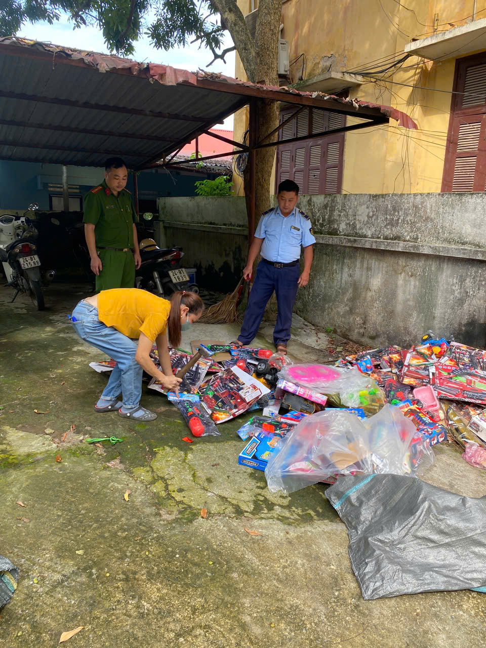 (Một số hình ảnh giám sát tiêu hủy hàng hóa vi phạm hành chính của Đội QLTT số 7)