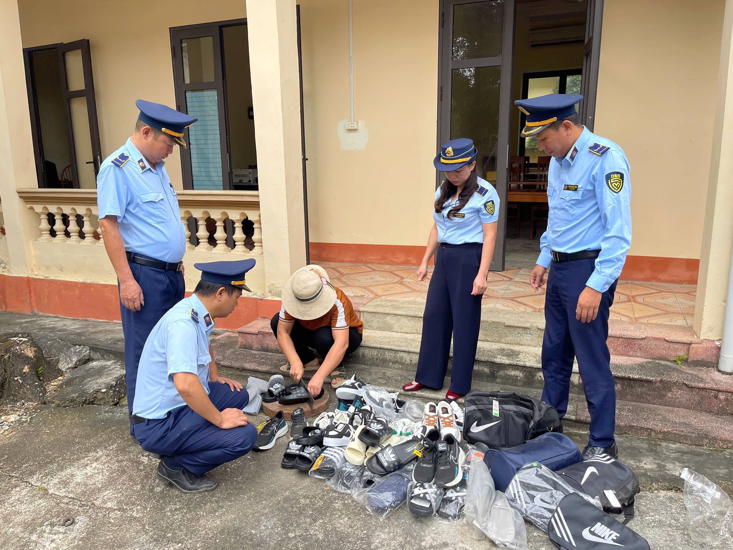 Cùng về hành vi vi phạm trên ngày 19/10/2025, Đội Quản lý thị trường số 4 tiếp tục tiến hành kiểm tra đột xuất Hộ kinh doanh M.T.N, có địa chỉ tại xã Púng Luông, tỉnh Lào Cai; kết quả kiểm tra phát hiện tại hộ kinh doanh đang bày bán 06 đôi dép nhựa người lớn nhãn hiệu Nike; 05 đôi giày thể thao nam nhãn hiệu Nike. Trị giá tang vật vi phạm theo giá niêm yết tại thời điểm kiểm tra là 1.400.000 đồng; bà M.T.N chủ hộ kinh doanh cũng không xuất trình được giấy tờ, hóa đơn, chứng từ gì có liên quan đến số hàng hóa trên. Sau khi lấy mẫu, chụp ảnh mẫu và trưng cầu xác định hàng hóa giả mạo nhãn hiệu đến Công ty TNHH Nike Việt Nam qua đó xác định toàn bộ số hàng trên là hàng hóa giả mạo nhãn hiệu Nike của Công ty TNHH Nike Việt Nam. Ngày 22/10/2025, Đội Quản lý thị trường số 4 đã tiến hành xác minh, làm việc với bà M.T.N chủ hộ kinh doanh và xác định hộ kinh doanh M.T.N đã có hành vi vi phạm “trưng bày để bán hàng hóa giả mạo nhãn hiệu”, Đội đã tiến hành lập biên bản vi phạm hành chính và trình cấp có thẩm quyền ra quyết định xử phạt hành chính hộ kinh doanh M.T.N với số tiền phạt là 6.000.000 đồng đồng thời áp dụng biện pháp khắc phục hậu quả buộc tiêu hủy toàn bộ số tang vật vi phạm trên theo quy định của pháp luật./.