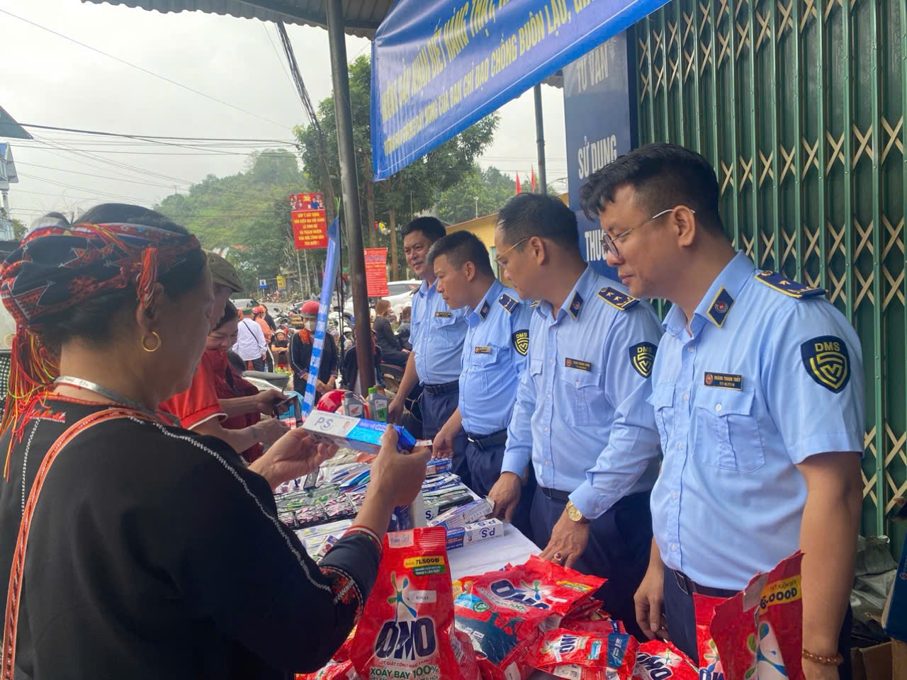Cùng với đó, Đội Quản lý thị trường số 2 phối hợp với các phòng chuyên môn của Chi cục Quản lý thị trường tỉnh Lào Cai xây dựng gian hàng trưng bày tại chợ xã với đa dạng, phong phú các chủng loại hàng, từ hàng công nghệ phẩm, hàng tiêu dùng, đến thời trang, may mặc… Tại gian hàng, nhiều sản phẩm bao gồm cả hàng giả và hàng thật để người dân được hướng dẫn nhận biết, đối chứng.