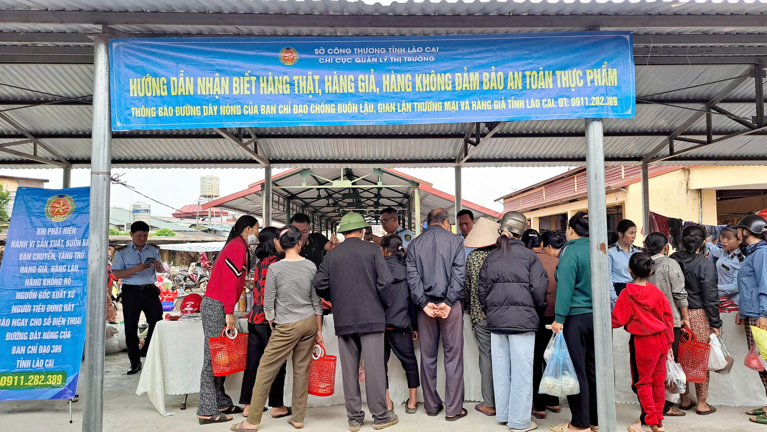 Thực hiện Kế hoạch số 191/KH-QLTT ngày 17/9/2025 của Chi cục Quản lý thị trường tỉnh Lào Cai về tuyên truyền, phổ biến pháp luật về phòng, chống buôn lậu, gian lận thương mại và hàng giả, giới thiệu các cách phân biệt hàng thật - hàng giả cho người tiêu dùng; Đội Quản lý Thị trường số 3 đã phối hợp với các Phòng chuyên môn của Chi cục Quản lý thị trường tỉnh Lào Cai và các đơn vị chủ thể quyền tổ chức tuyên truyền, phổ biến pháp luật tại chợ phiên xã Xuân Ái, tỉnh Lào Cai.